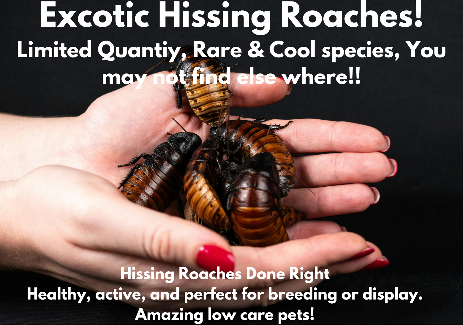 Hissing roaches make amazing pets because they’re hardy, low-maintenance, and surprisingly fun to keep. They don’t require a lot of space, they’re quiet, they don’t smell when cared for properly, and they’re easy to feed since they eat simple foods like fruits, vegetables, and dry chow. They’re also gentle and safe to handle, making them a great choice for beginners, kids (with supervision), classrooms, or anyone who wants a unique pet without the high upkeep of traditional animals. One of the coolest things about them is their ability to “hiss,” which they use to communicate, making them more interactive than most people expect. Overall, hissing roaches are fascinating, easy-to-care-for pets that are perfect for anyone who wants something different, interesting, and enjoyable to own.